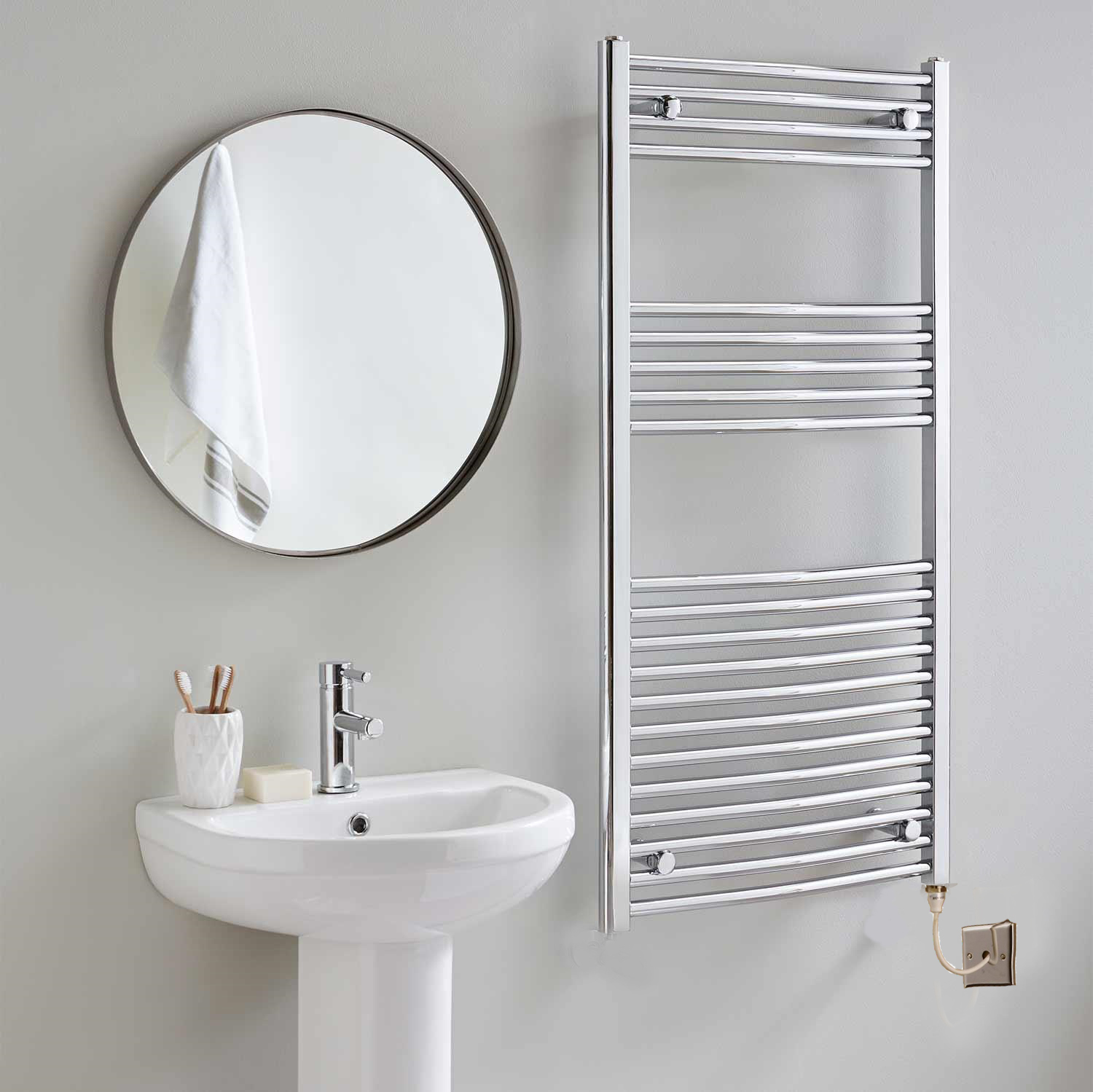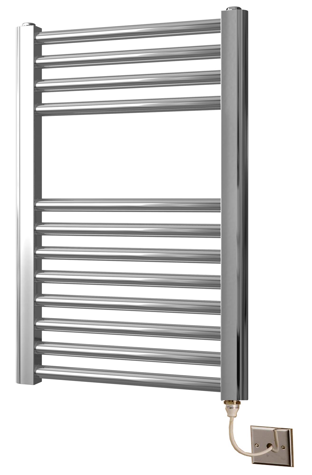 These chrome plated curved electric towel rails come with an energy efficient PTC electric heating element to couple cost effective operation with an excellent hand crafted build quality.